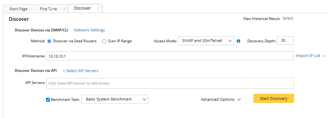 - Select a Benchmark task you wish to execute right after the Discover task to update device data like topology and MPLS cloud. The discovered devices are not ready to use in features like maps or paths until the Benchmark finishes. You can also skip this step and leave it for the next scheduled System Benchmark.