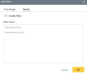 Two kinds of filters, Time Range and Result, are available. Different chart types will offer different default settings.
