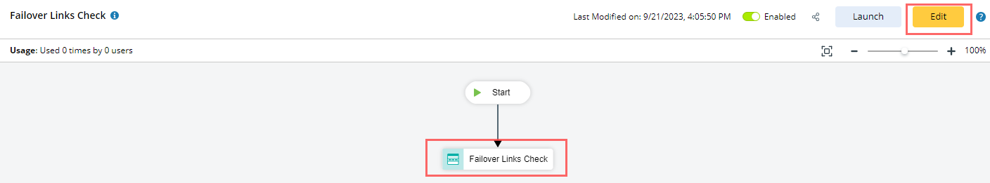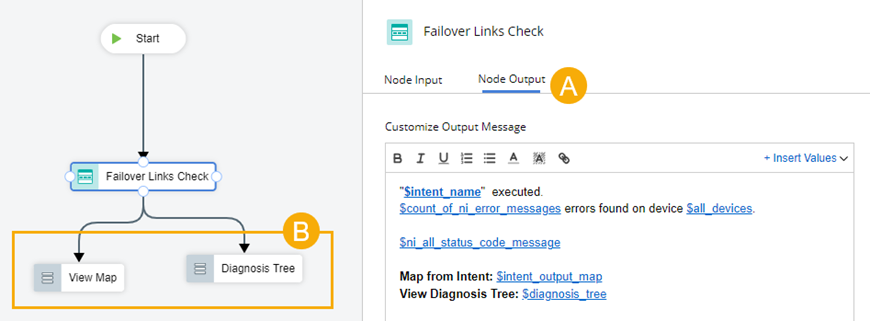 A main output in the full editor: The Node Output of the Failover Links Check ADT node.