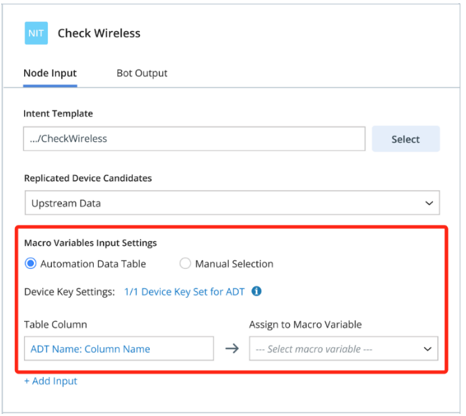 In Bot Wizard Where to Edit in Full Editor Power users do not need to define input devices. The bot wizard will use the decoded devices as the candidate values for end users to choose from. In NIT node settings:
