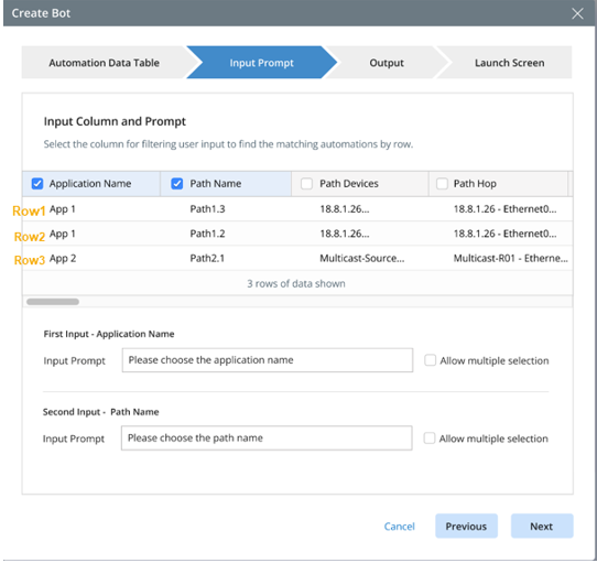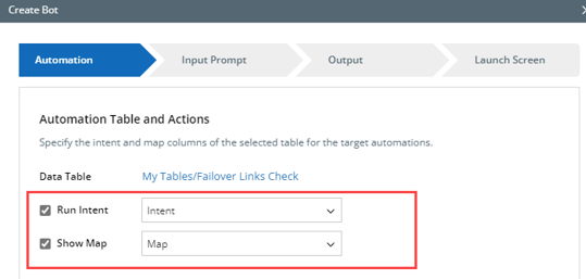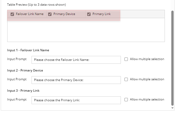 In Bot WizardPower users select Failover Link Name, Primary Device, Primary Link columns and define the input prompts.