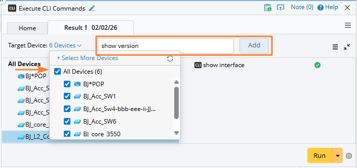 In the left pane, select All Devices and enter the command in the input field. Click Add to apply it to all target devices.