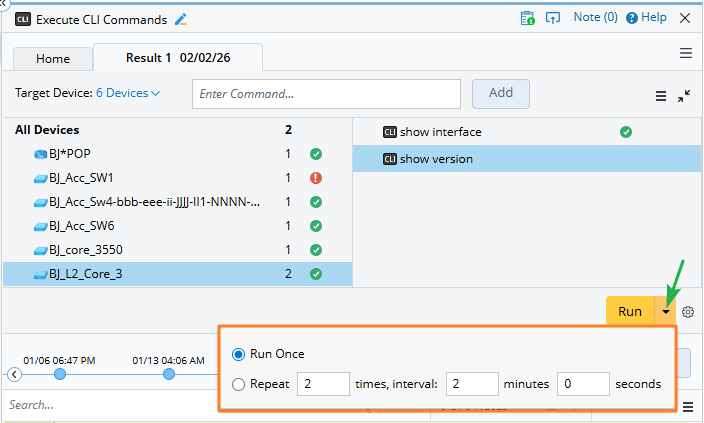Click Run to execute the commands. Also, you can set the execution frequency from