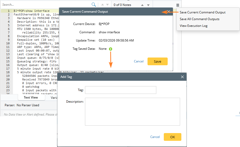menu and choose Save Current Command Output for the selected device.