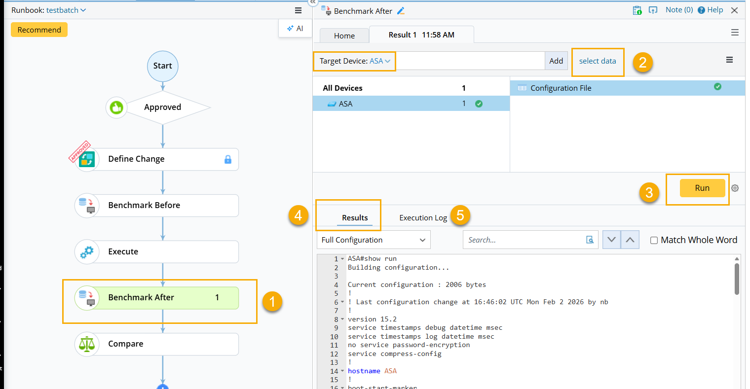 - In the Benchmark After pane, select devices and define the data type. The predefined devices, CLI commands, and data types are used by default.
