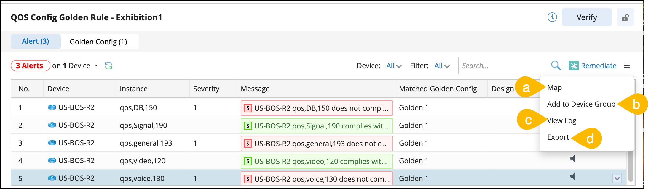 - Compliance: Number of golden rules that comply with the Golden Config Template after verification.