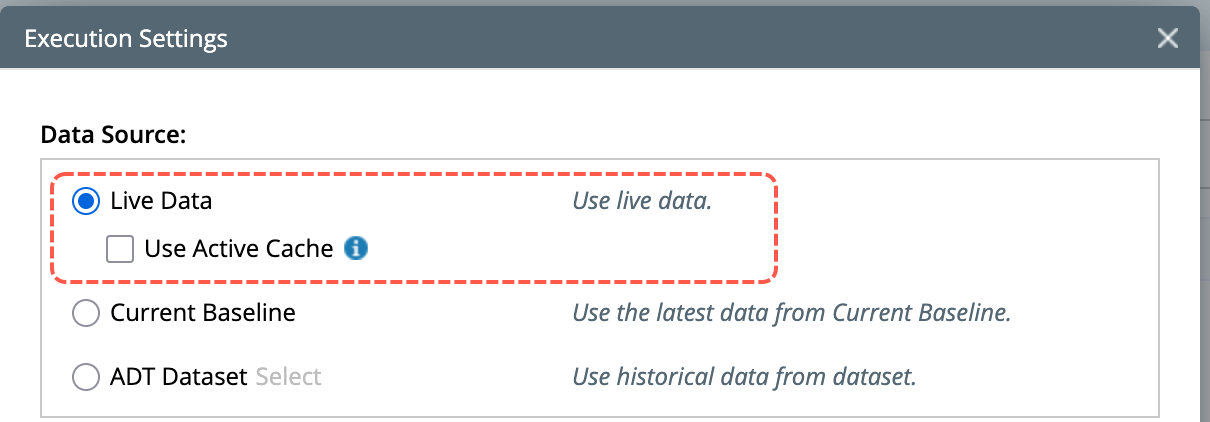 Note: For data accuracy, use the data source Live Data for verification and disable the Use Active Cache option.