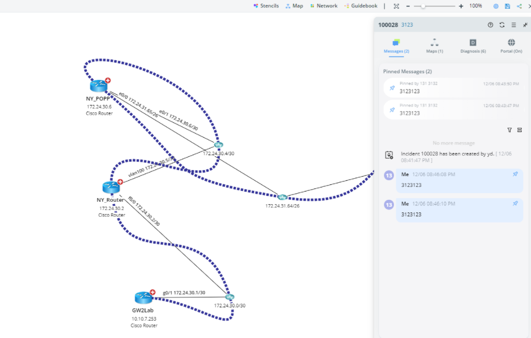 Troubleshooting with teammates collaboratively based on the automation findings via the map and portal.