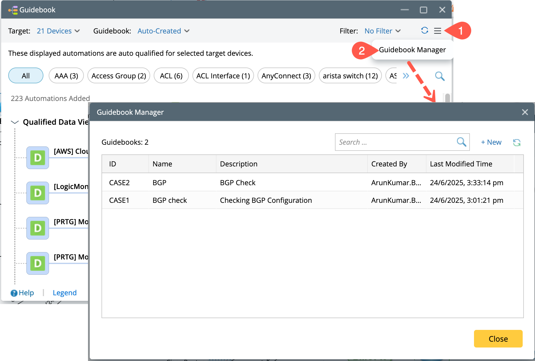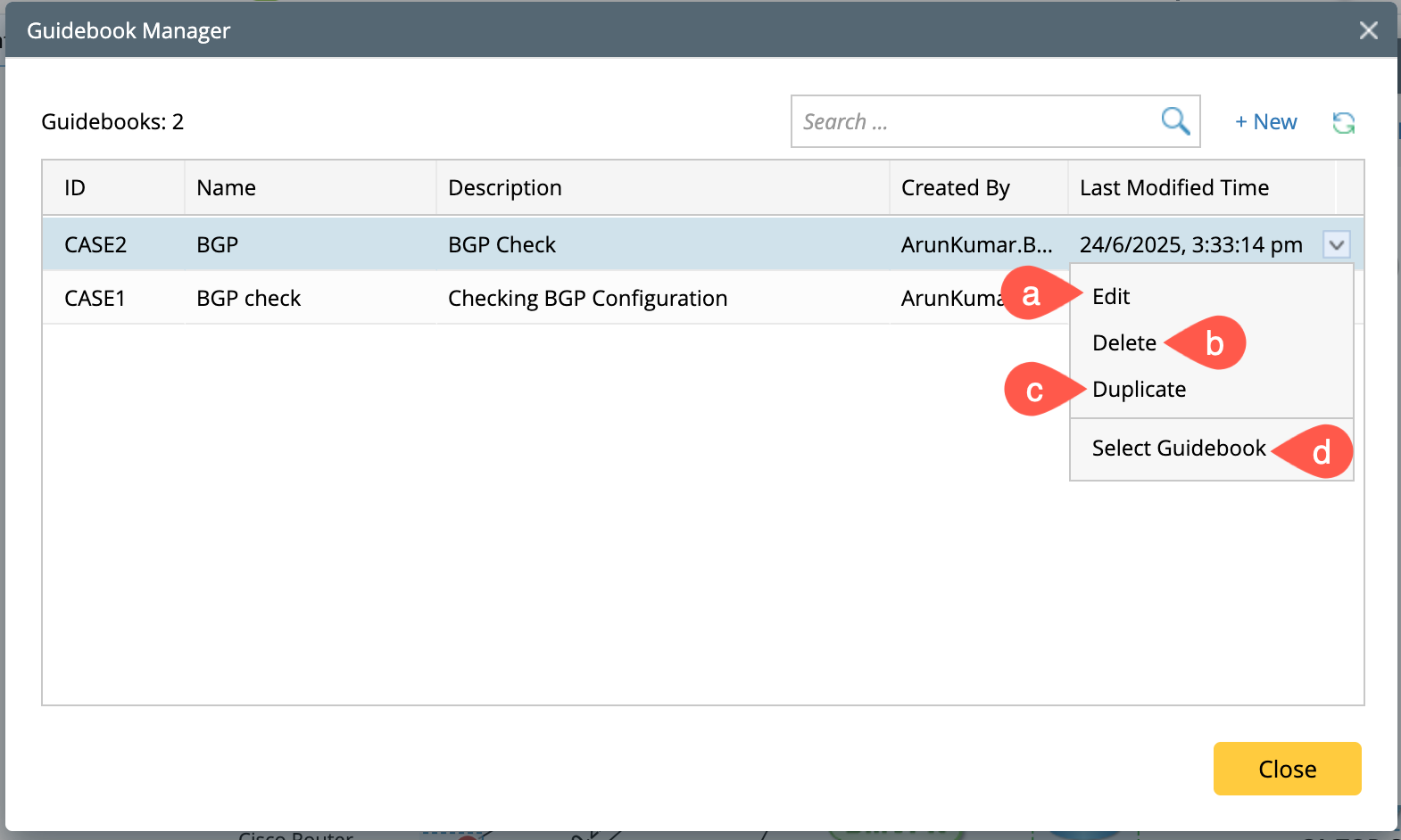 You can view all saved Guidebooks in the Guidebook Manager interface and their respective detailed information: