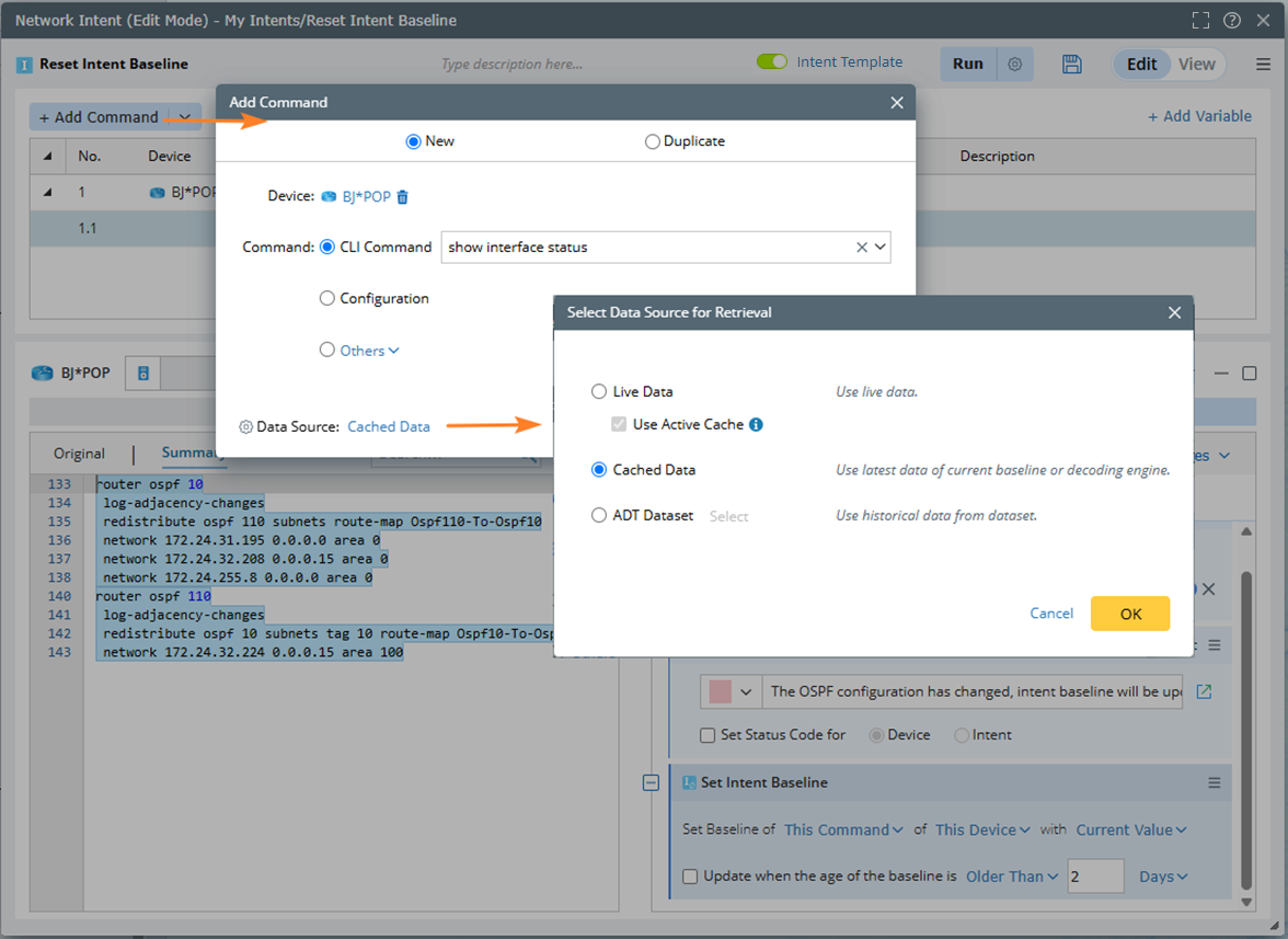 Set the intent baseline at the time of intent creation (cloning NI via NIT). The source of the intent baseline is determined by the data source settings in the 'Replication Setting'.