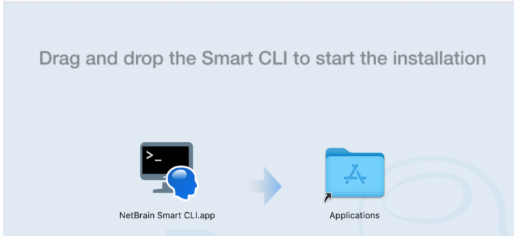 - Drag the NetBrain Smart CLI icon on the left to the Applications icon on the right, and then the installation is complete.