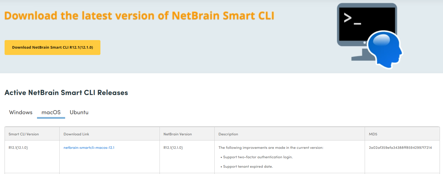 - Download the Smart CLI installation package from the NetBrain login page to a local directory.