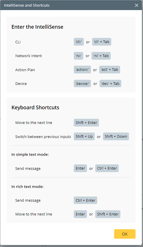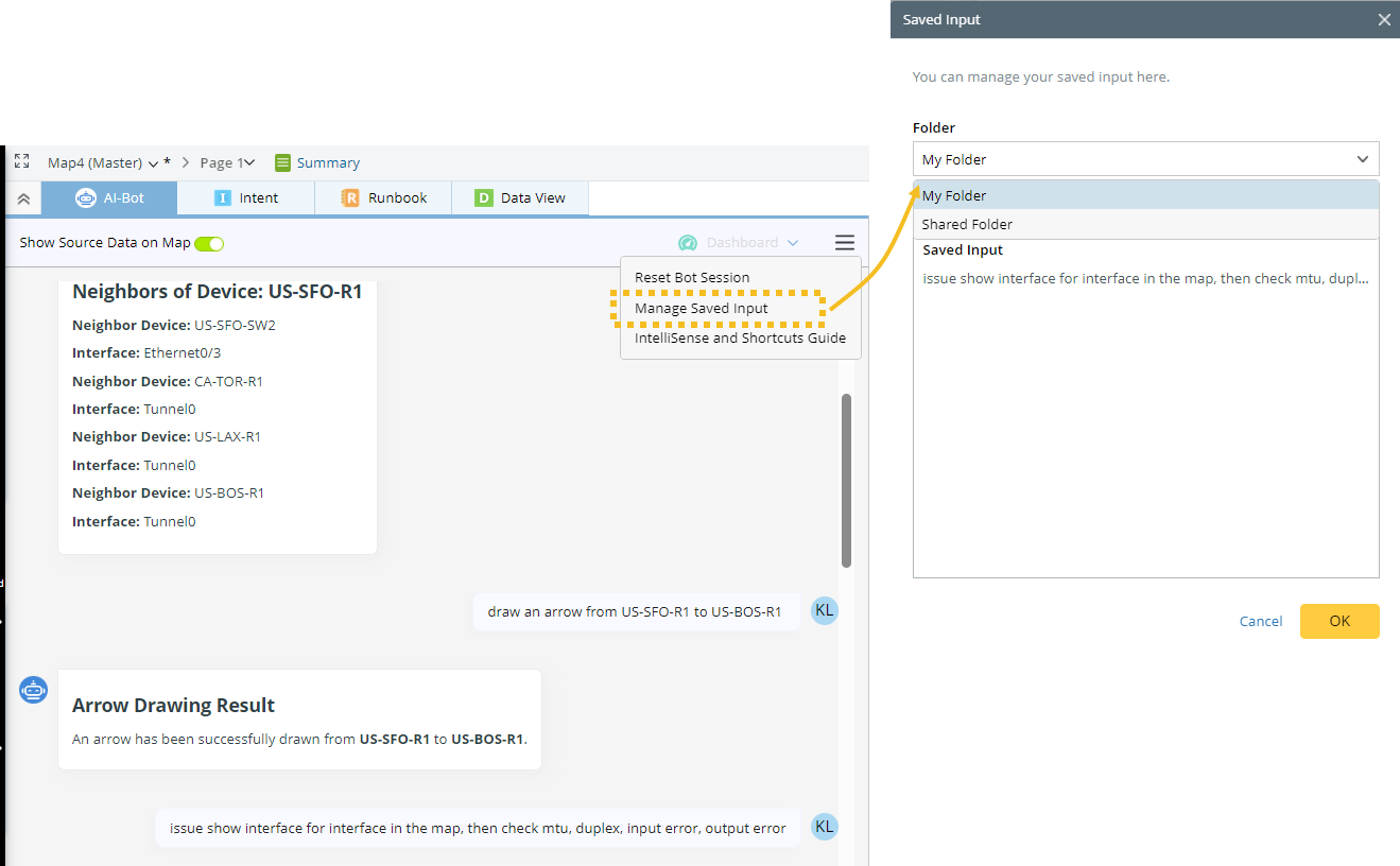Specify the input type for the AI bot to reason and respond more precisely. If the user knows what they want to do and/or what automation they want to execute and wants to receive a more precise response from the bot, they can tag their input by specifying the type (CLI, Automation, Action Plan, or Device).