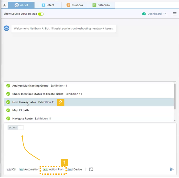 Example: A user wants the AI bot to follow the Host Unreachable action plan for troubleshooting.