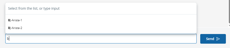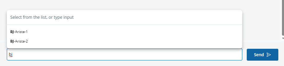 - BJ-Arista-1 and BJ-Arista-2 are in the candidate list. Enter BJ and press the Tab key, BJ-Arista-1 will be auto-completed in the input box.
