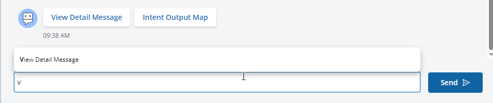 - View Detail Message and Intent Output Map buttons are available. Enter v and press the Tab key, View Detail Message will be auto-completed in the input box.