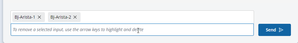 | Delete a value from the input box | Arrow keys and Delete key. Example: Delete BJ-Arista-2 Use the arrow keys to select BJ-Arista-2, press the Delete key.  |