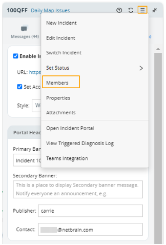 at the upper-right of the Incident, then select Members from the drop-down menu.
