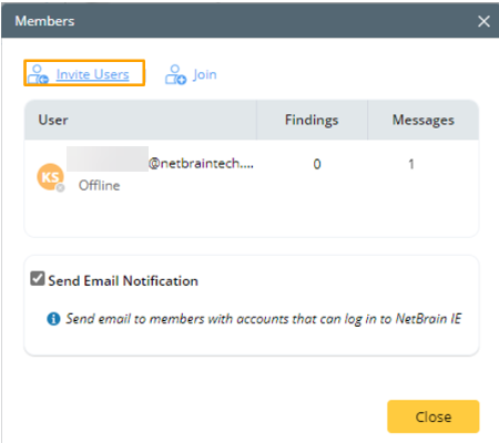 Invite Users with NetBrain Accounts to Join a Collaboration Session