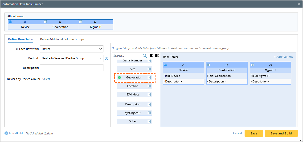 - Column Group Builder: Another method to create dynamic automation columns or property columns for each automation asset.