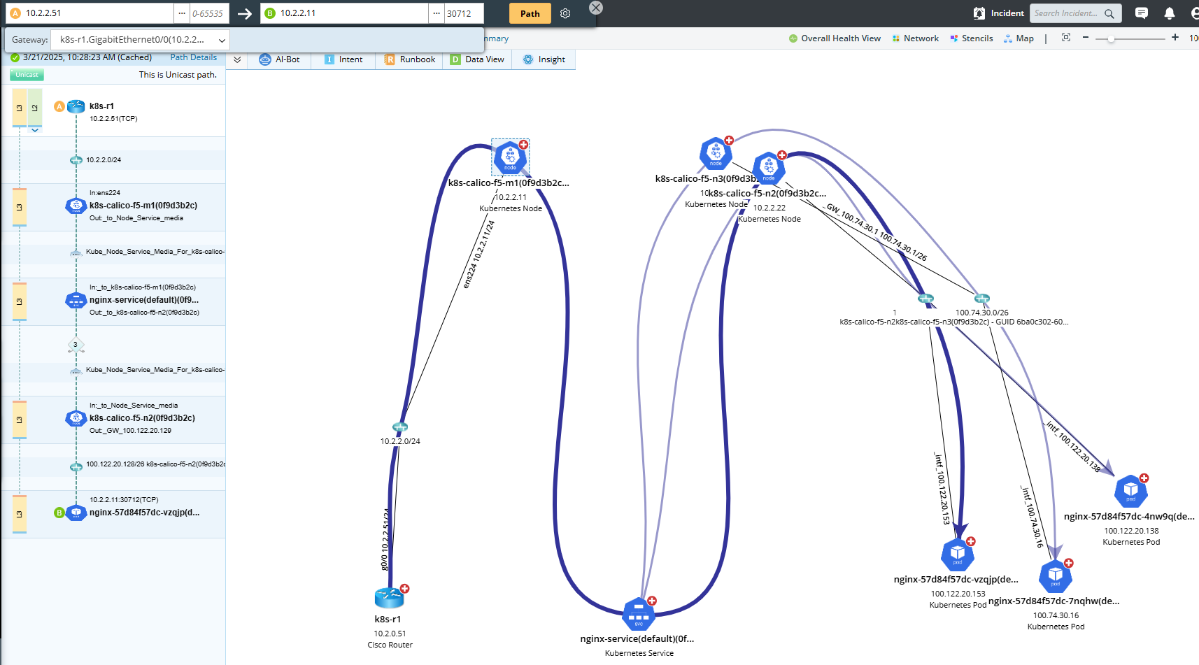 The NetBrain Automation Platform enables you to automate the diagnosis of your Kubernetes environment.