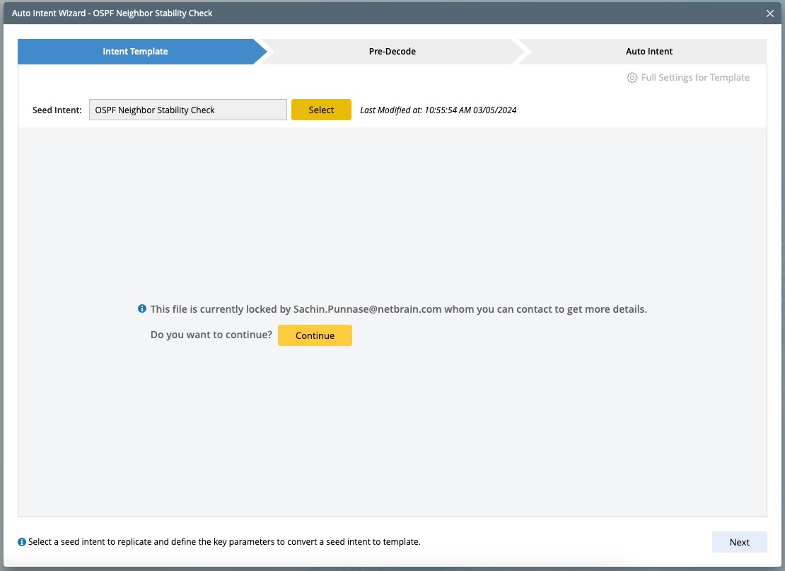 - For intent Creator: The intent creator has the privilege to edit the locked intent and can click Continue to proceed.