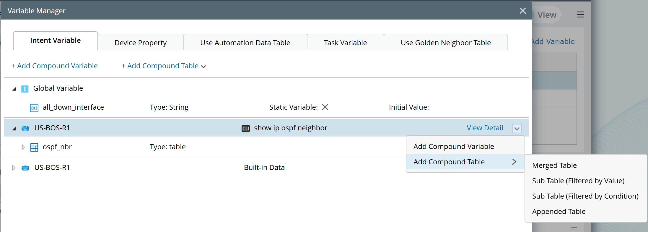 - For Device node: Adding device compound variable and compound table are supported.