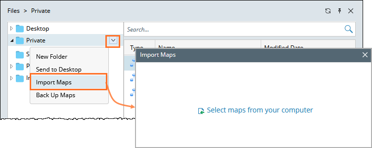 - In the pop-up dialog box, click Select maps from your computer to select a map from your local machine.