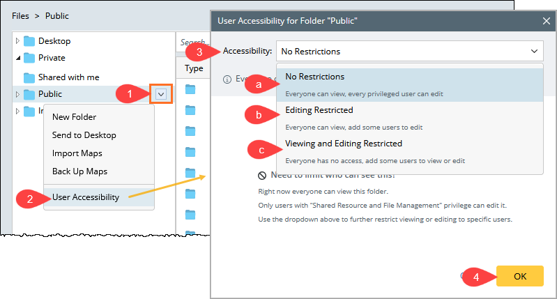In the User Accessibility for Folder "Public" dialog, select an accessibility option.