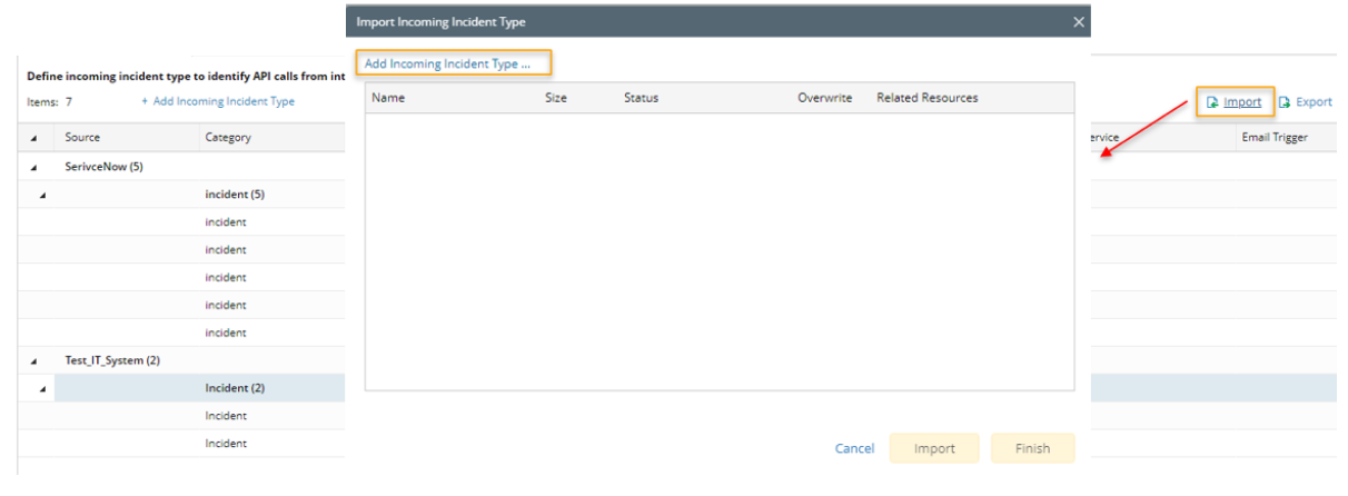 > Add Incoming Incident Type … > select a local file in the pop-up window.