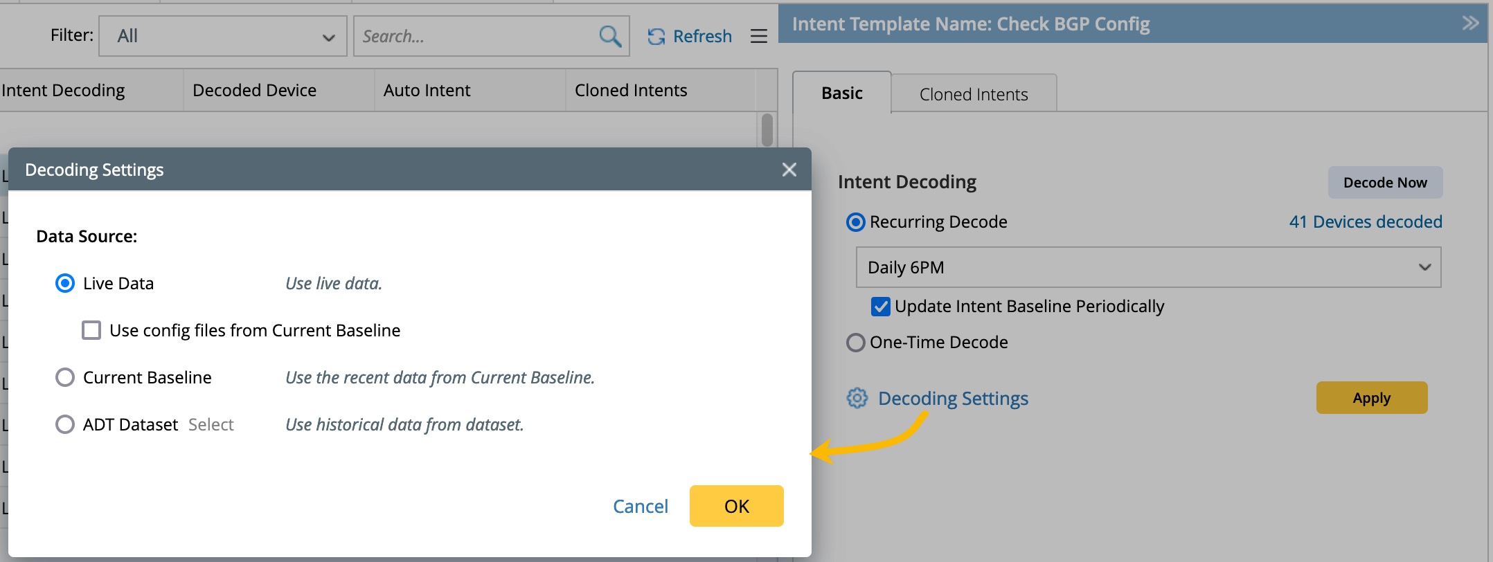 - You can also choose to Update Intent Baseline by checking the box.