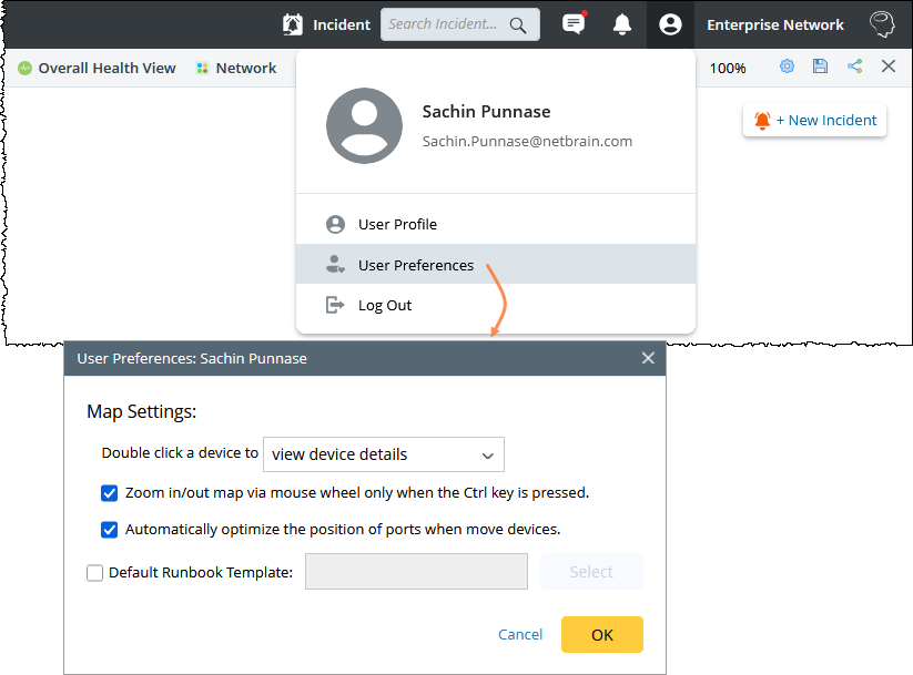 To access these settings, click your profile icon and select User Preferences from the dropdown menu.