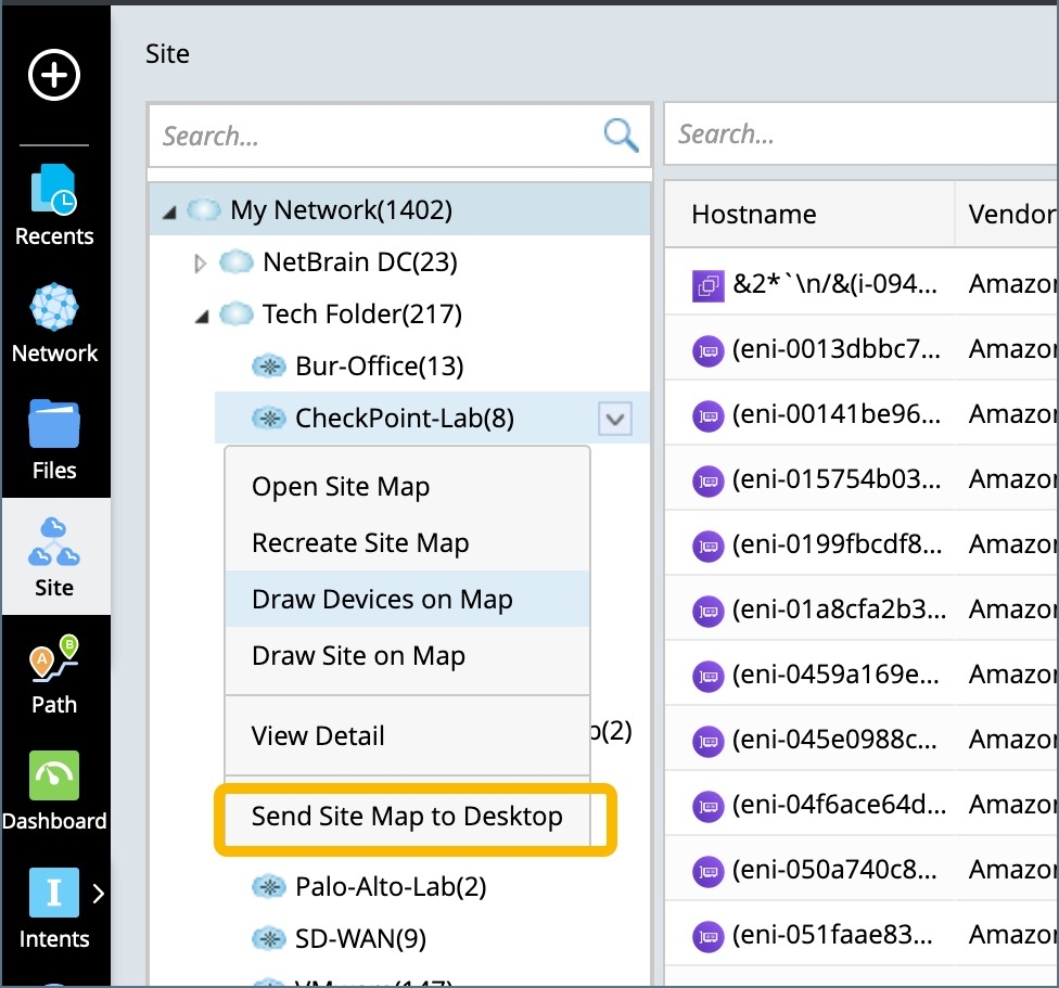 Tip: To create a shortcut to the site on the desktop, please select Send Site Map to Desktop. This function is available for both the leaf and container sites.