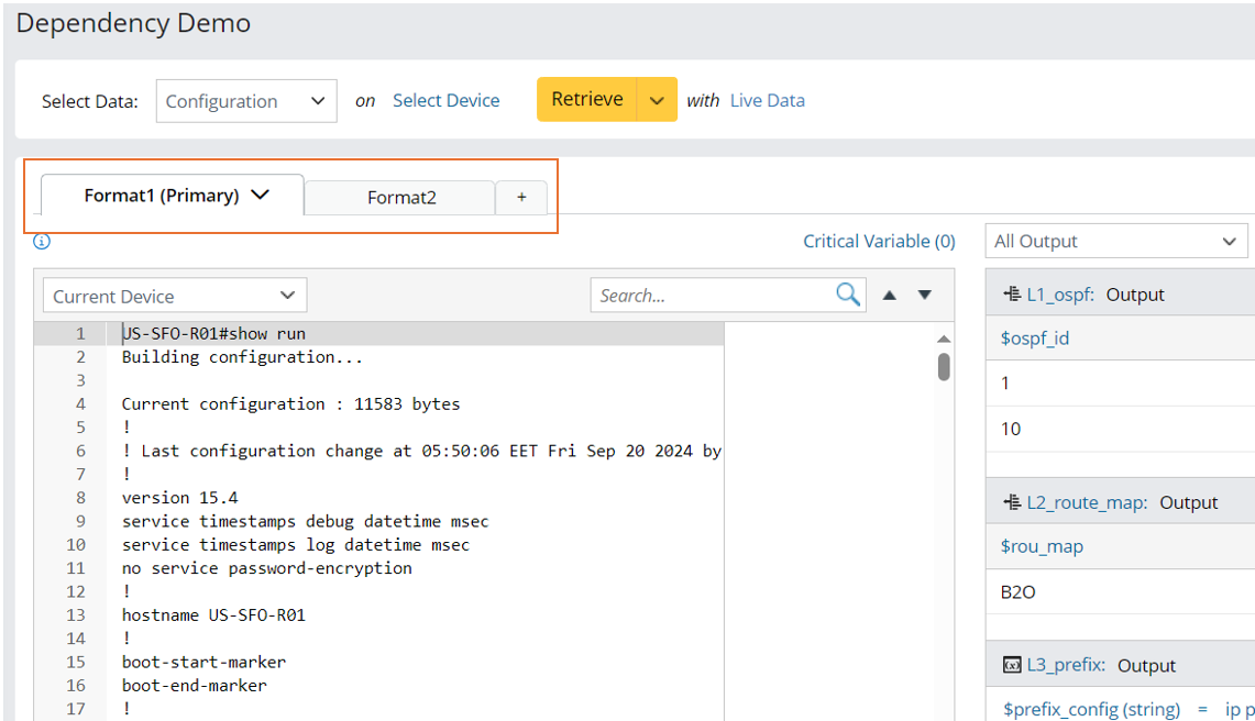 - Sometimes even the same command is issued on the same device, the output format may change, for example, issuing a command [show ip route x.x.x.x] on the same device. If the dynamic routing changed, the text format of the command output may change accordingly.