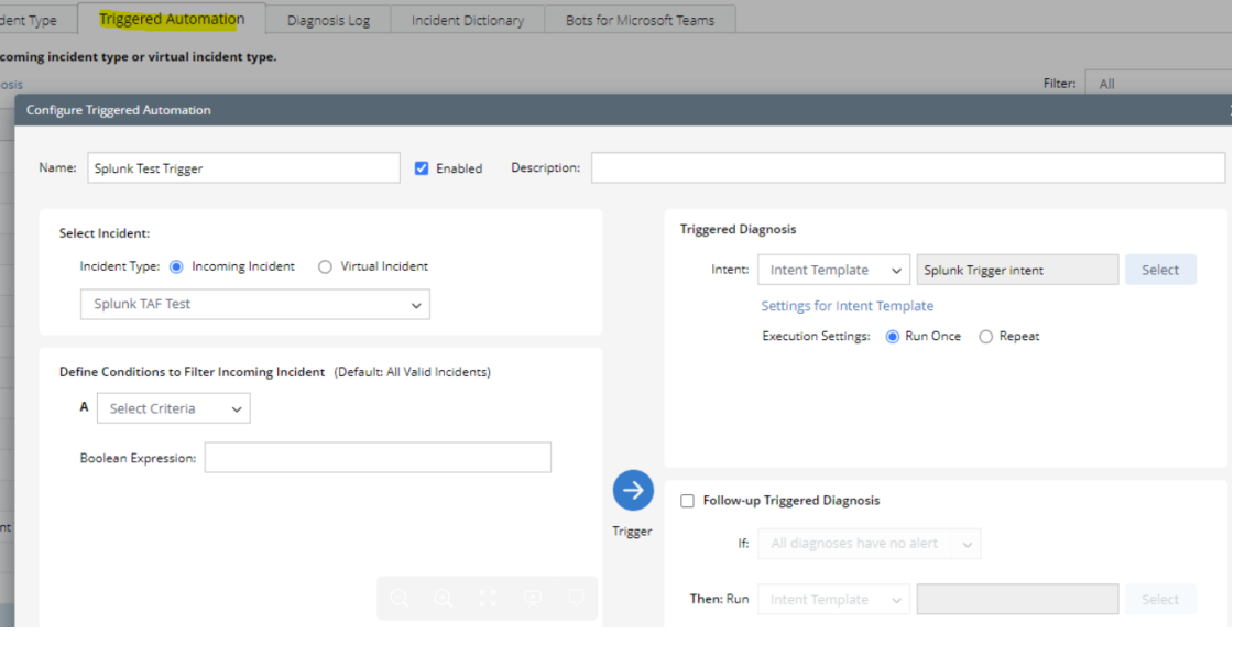 - On the Triggered Automation tab, create a triggered diagnosis.