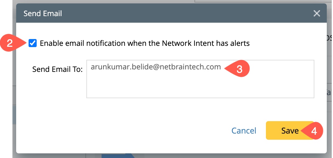 - Check the box to Enable email notification when the Network Intent has alerts.