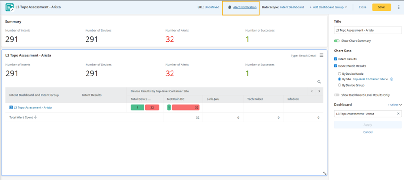 In the Edit mode, you can send email notifications for selected dashboard groups. In Edit mode, click Alert Notification to configure the notification settings.