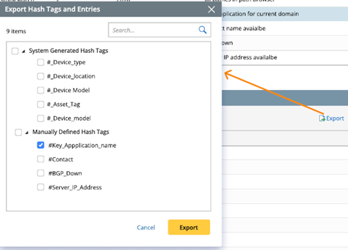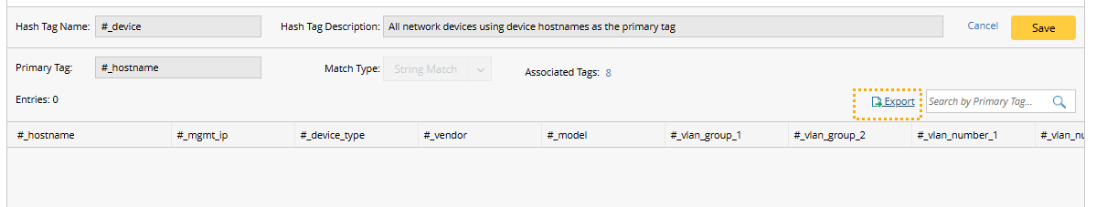 The existing Hash Tags can be exported by clicking on Export. You can export system-generated or manually defined Hash Tags into a CSV file.