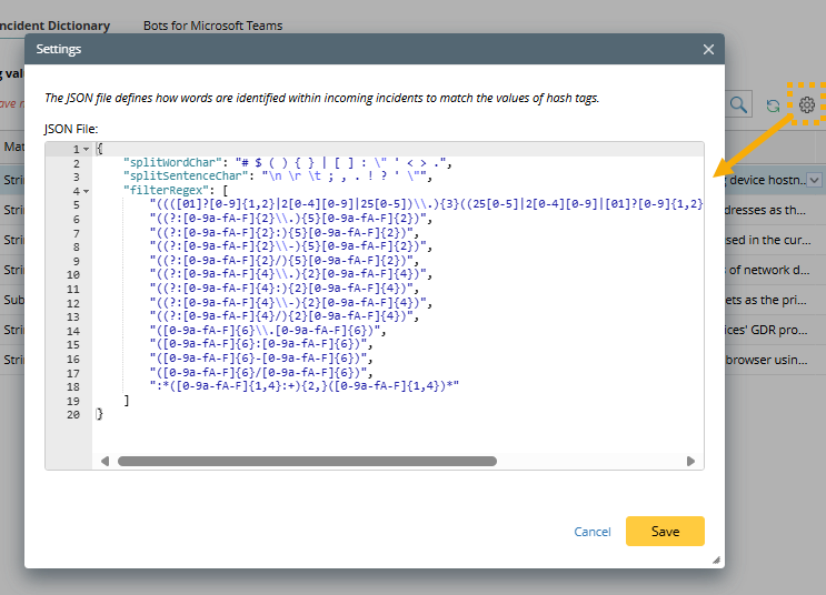 icon can view and modify the JSON file to match Incident Dictionary's logic.