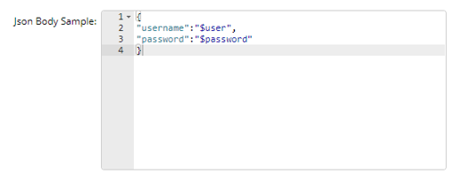 - Input Json script: In the Json Body Sample block, you can input Json script. The variables defined in the Json script will be used to define NI.