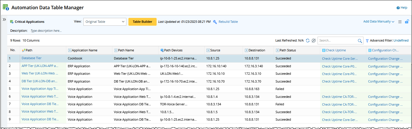 When you troubleshoot the network issues, your network may not be healthy, and the path may fail. Knowing the path when the network is healthy can speed up troubleshooting. Therefore, you should identify the critical applications, define the path source/destination and their gateway, and discover these paths when the network is healthy.