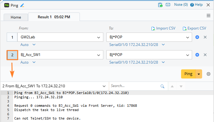 Tip: When selecting a device, its management interface is used as the default ping source. You can choose another interface if required. -