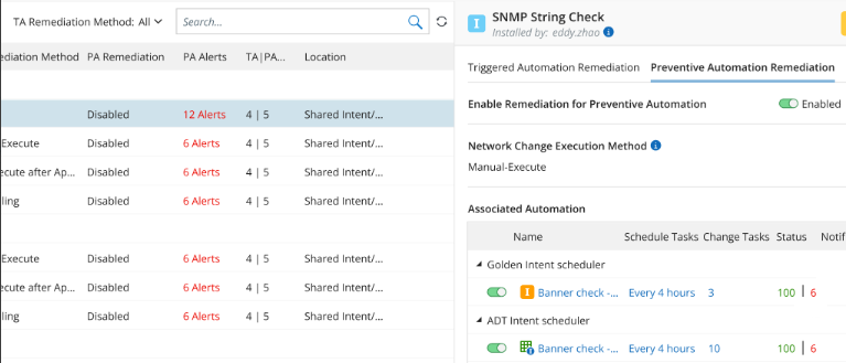 Example: One remediation intent is used in 2 different PA tasks; One is a scheduled golden intent task which generates 6 alerts, and the other is a scheduled ADT intent task, which generates 6 alerts. So the total alerts are 12.