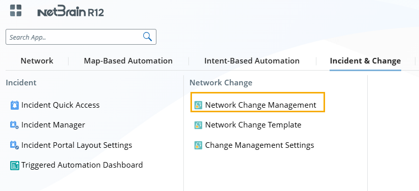 - Click the start menu, and navigate to Incident& Change > Network Change Management page.