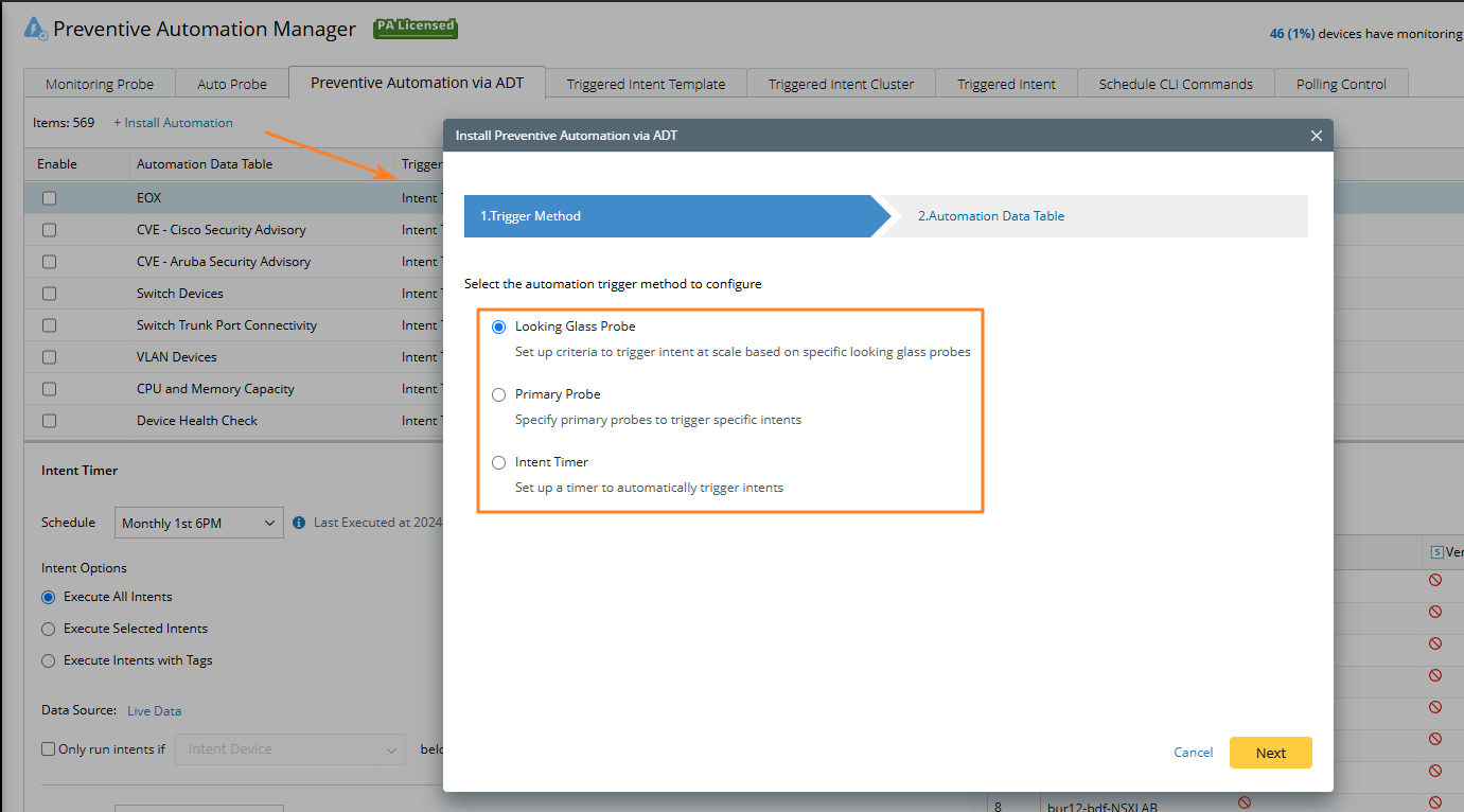 Intents can be triggered by the following three ways in preventive automation: