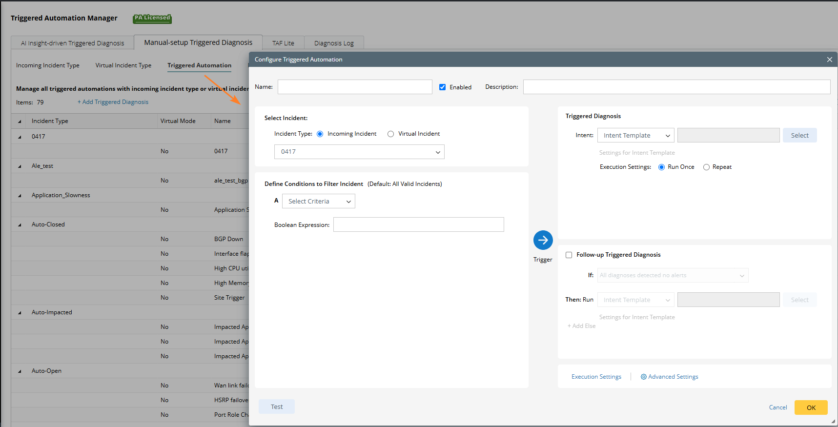 Like other automation objects such as Qapps, NIs can be triggered by condition or ticket to run at the backend automatically. More commonly, NIs can be triggered to run by: