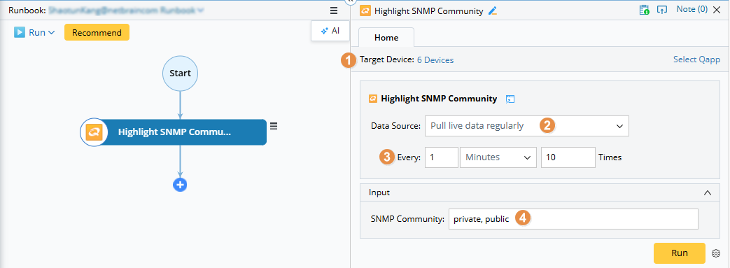 - Click Run in the Runbook pane to start execution.