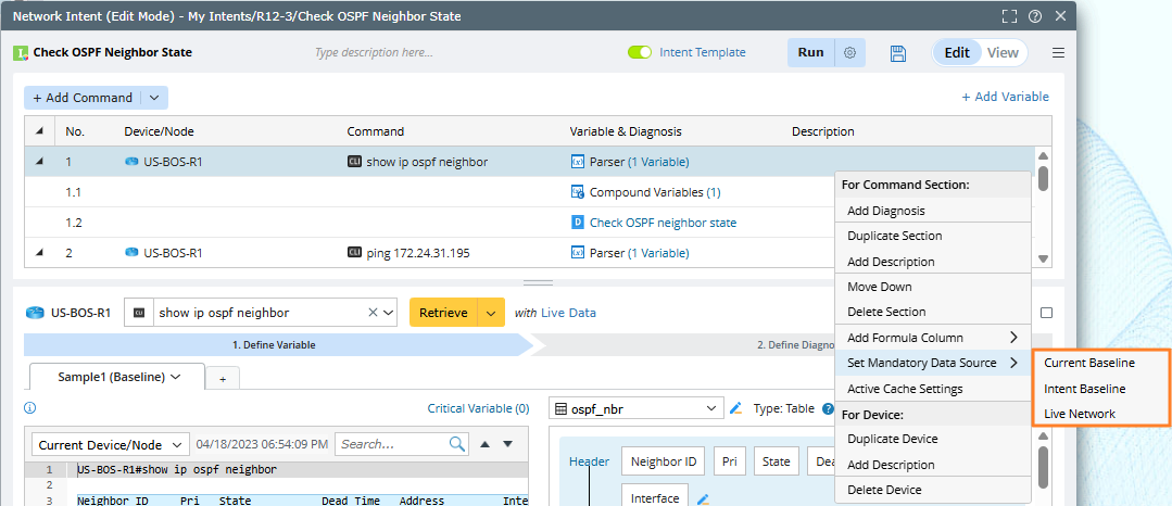 Note: You can select Intent Baseline as the Data Source, as is more useful for debugging NIs from other domains shared by others. After selecting this option, the baseline data defined in NI is used when executing NI.