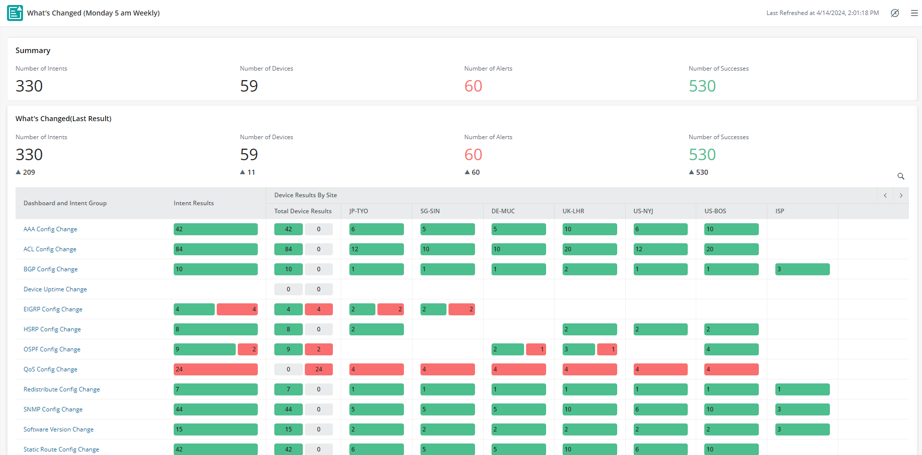 - After the change, run intents to highlight what has changed and verify that your change is indeed successfully pushed to the devices.