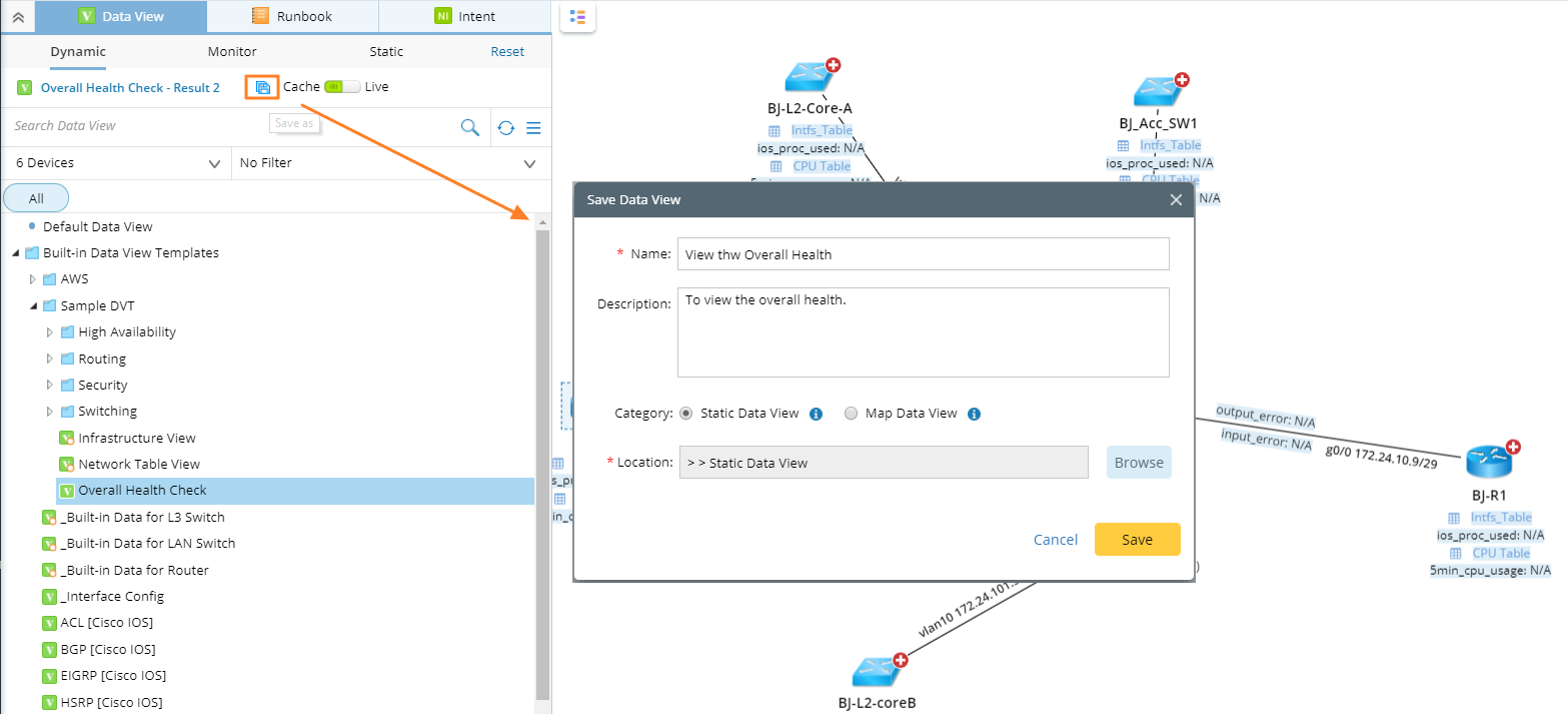 - In the Data View pane, double-click the dynamic data view Overall Health Check to apply it to a map page.
